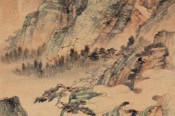 浅绛山水,中国山水画中的一种没色技巧。即凡以淡红青色彩渲染为主山水画,统称浅绛山水。其方法是先用浓淡,干温变化之墨线勾勒轮廓结构变化之后,再施以淡的赭石,(或掺少稍失砂类)染山石,树木结构处。最后用淡花青类色渲染即在水墨勾勒皴染的基础上,敷设以赭石为主的淡彩山水画。